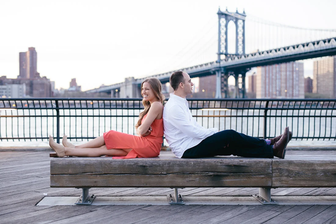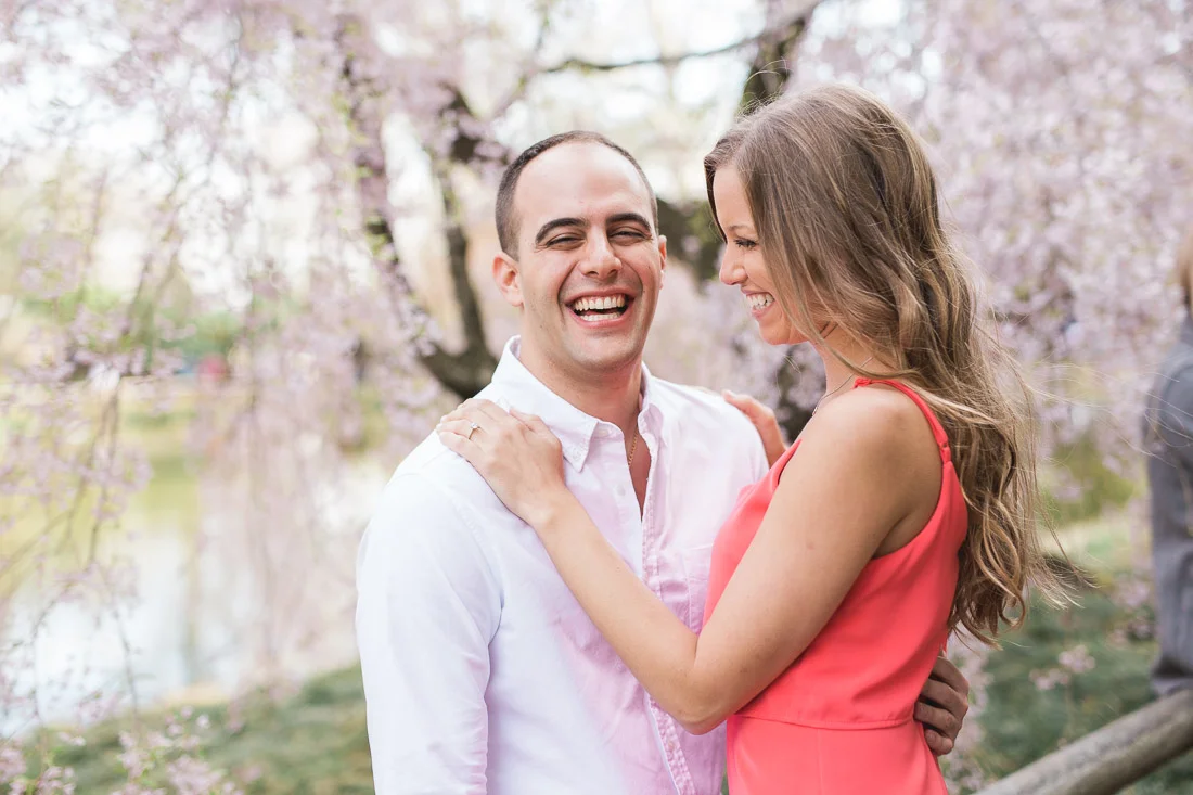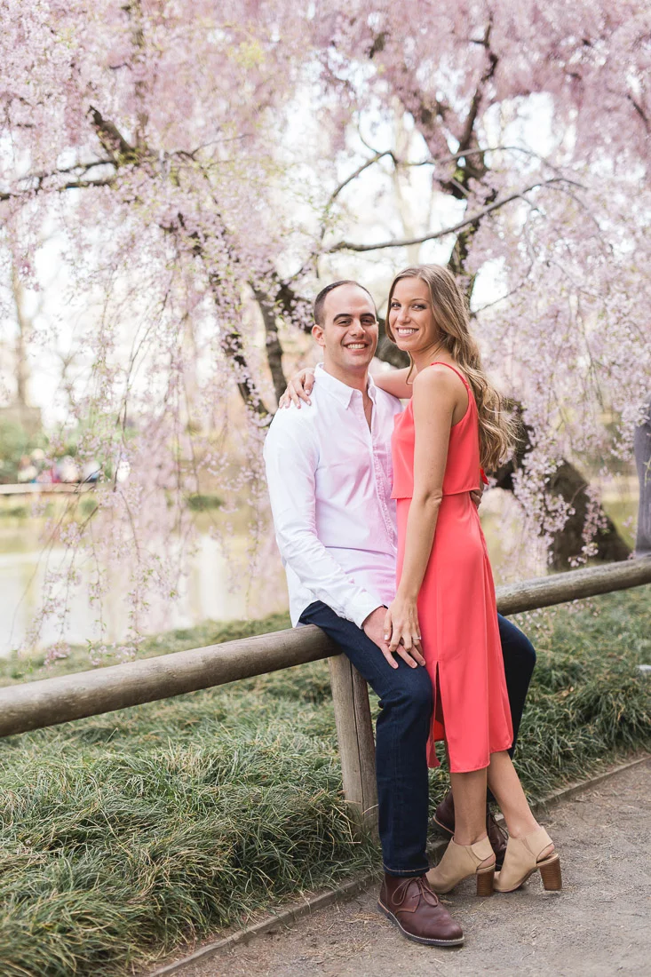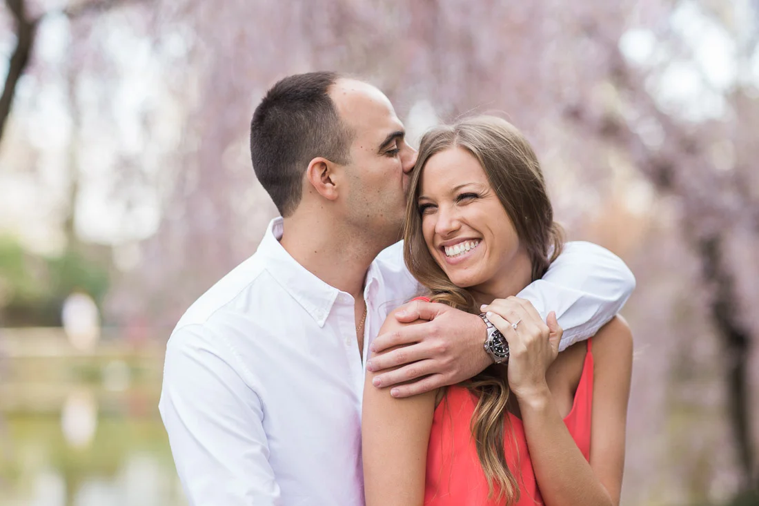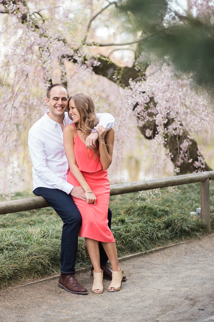 When Adam, Lauren, and I realized the Cherry Blossoms would be in peak bloom during their engagement session we knew we had to visit The Brooklyn Botanic Garden. A couple thousand people also had the same idea. The annual Sakura Matsuri festival fell on the same weekend and although we were surrounded by people celebrating traditional and contemporary Japanese culture, we managed to find some space for ourselves and take some pictures. After that we meandered over to Brooklyn Bridge Park to watch the sunset and finish up our day.