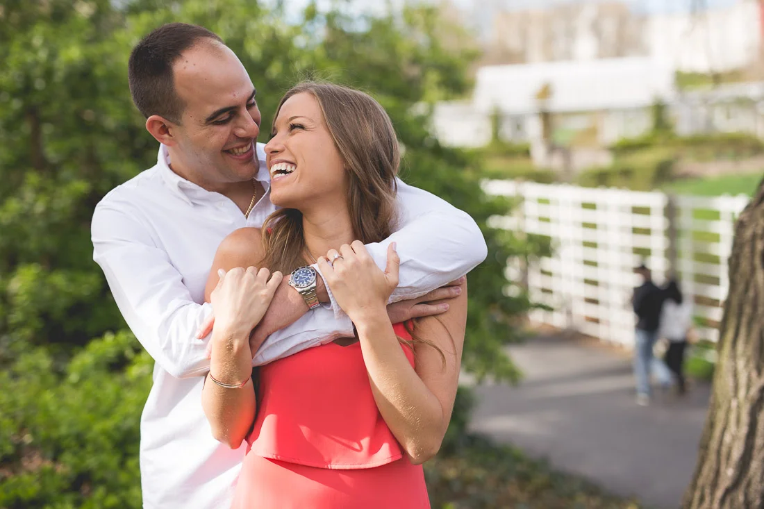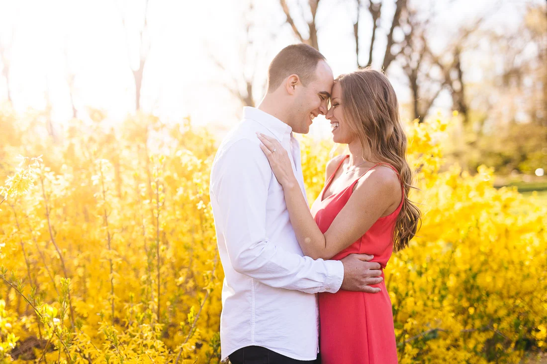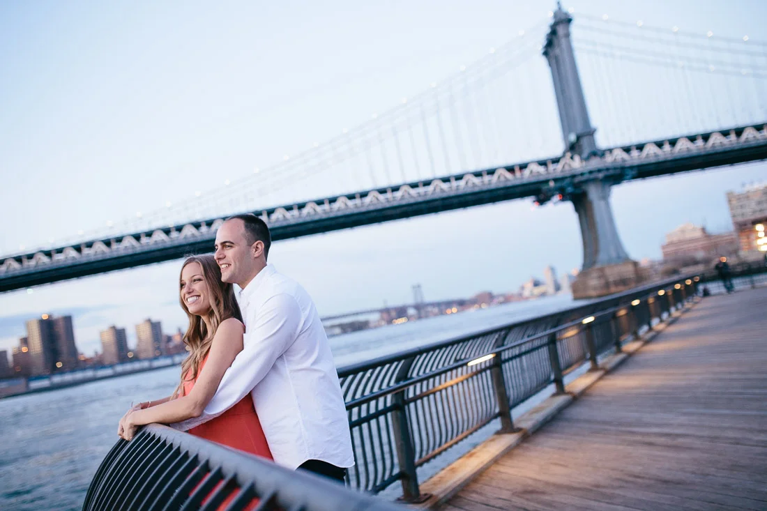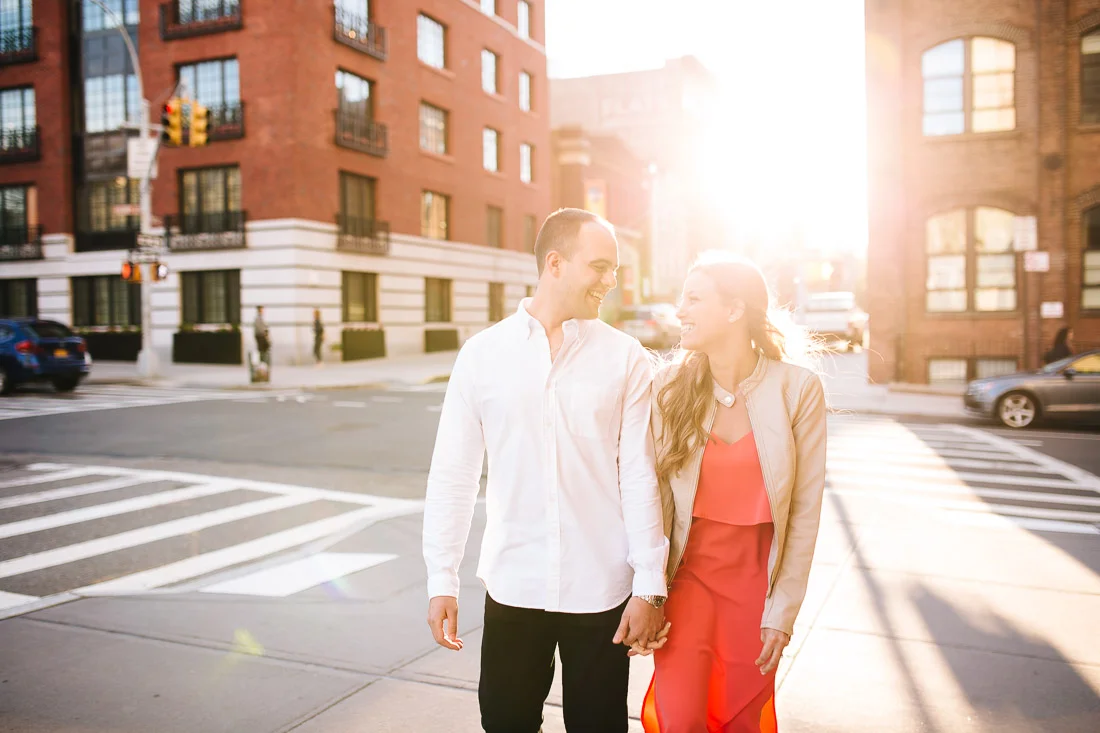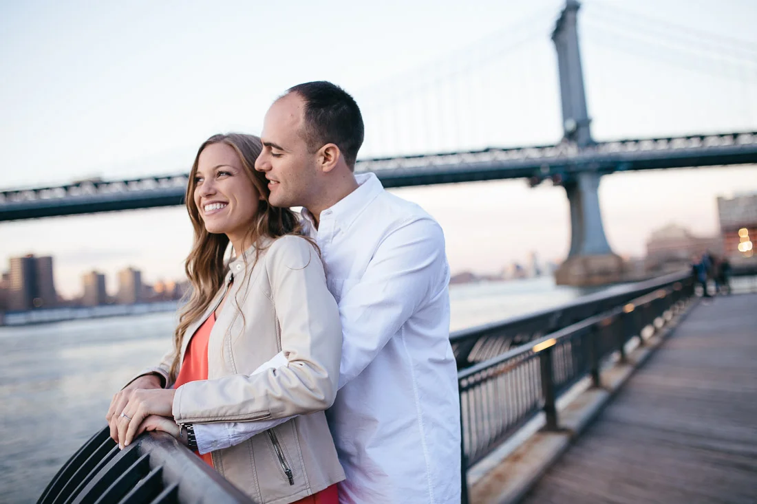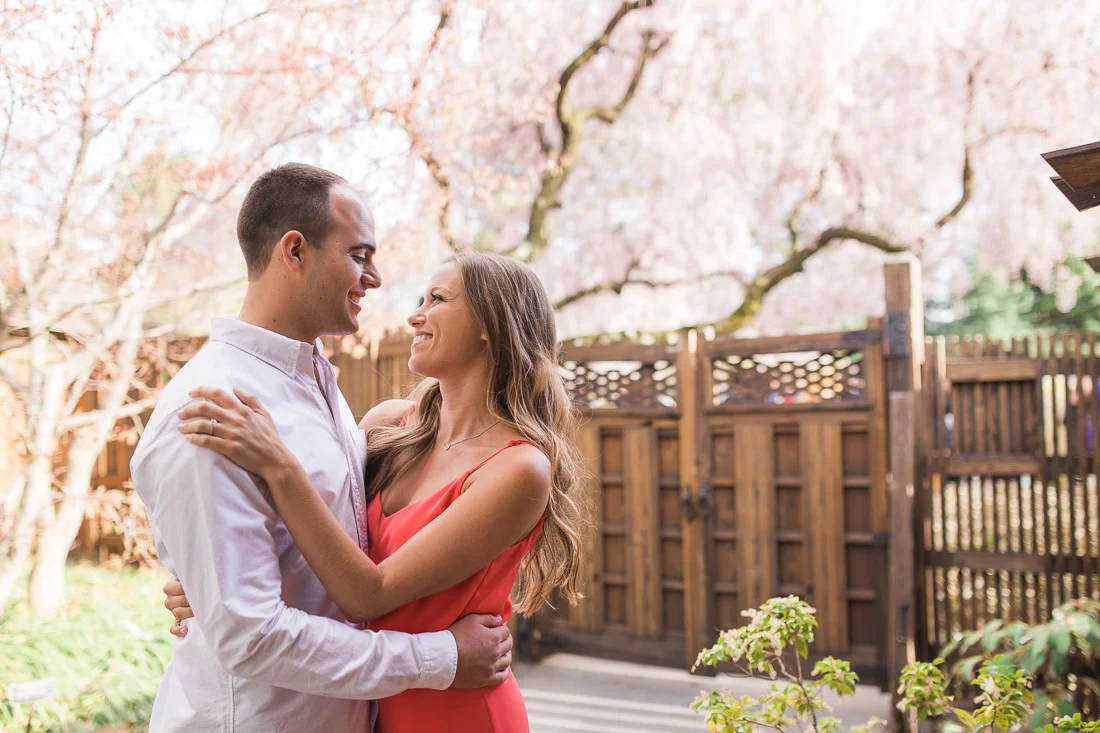 When Adam, Lauren, and I realized the Cherry Blossoms would be in peak bloom during their engagement session we knew we had to visit The Brooklyn Botanic Garden. A couple thousand people also had the same idea. The annual Sakura Matsuri festival fell on the same weekend and although we were surrounded by people celebrating traditional and contemporary Japanese culture, we managed to find some space for ourselves and take some pictures. After that we meandered over to Brooklyn Bridge Park to watch the sunset and finish up our day.