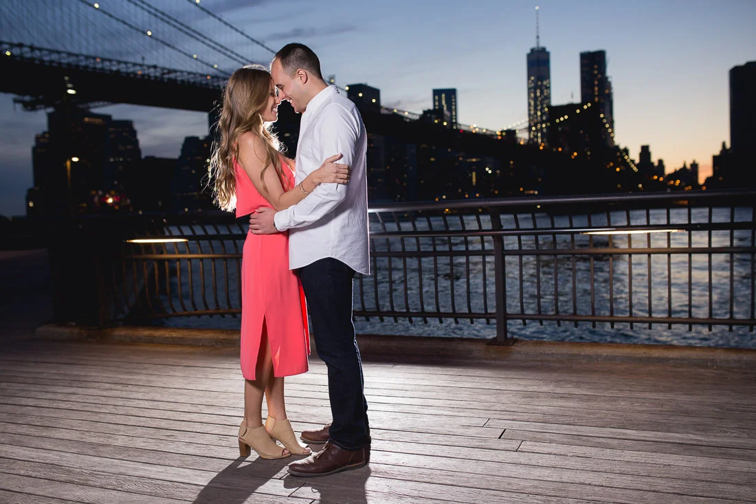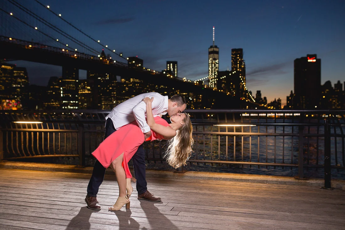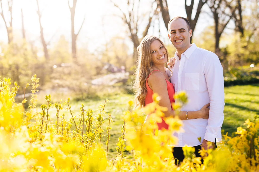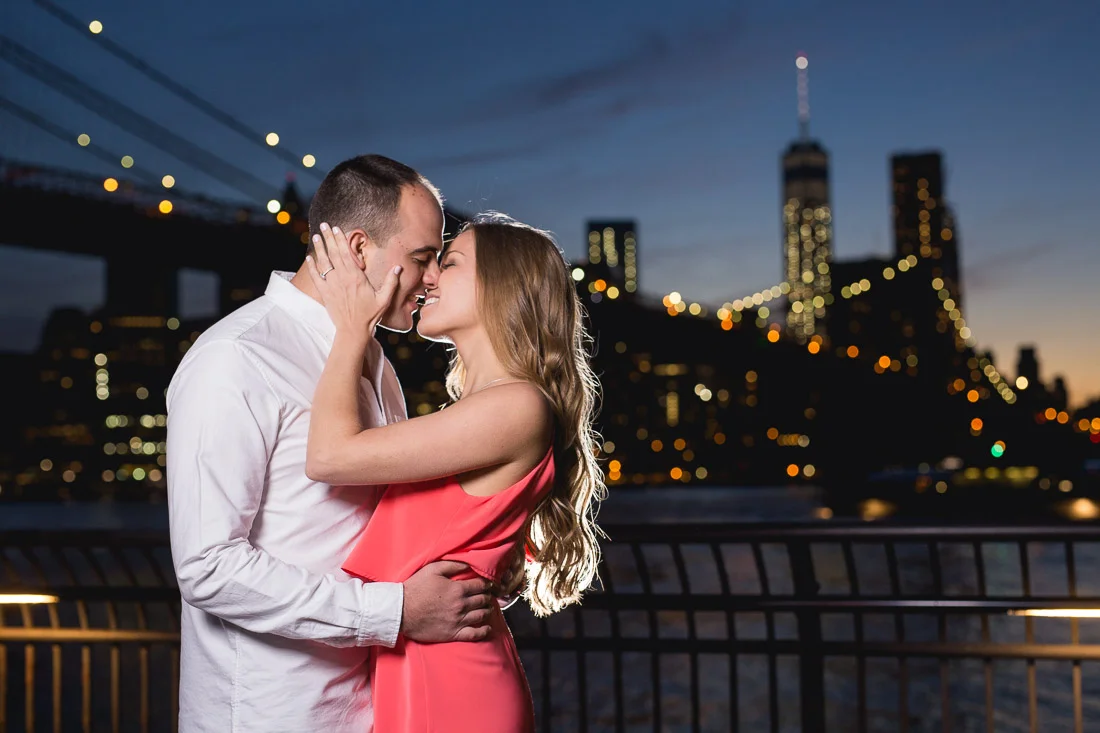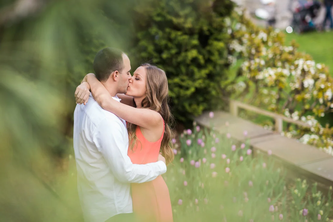 When Adam, Lauren, and I realized the Cherry Blossoms would be in peak bloom during their engagement session we knew we had to visit The Brooklyn Botanic Garden. A couple thousand people also had the same idea. The annual Sakura Matsuri festival fell on the same weekend and although we were surrounded by people celebrating traditional and contemporary Japanese culture, we managed to find some space for ourselves and take some pictures. After that we meandered over to Brooklyn Bridge Park to watch the sunset and finish up our day.